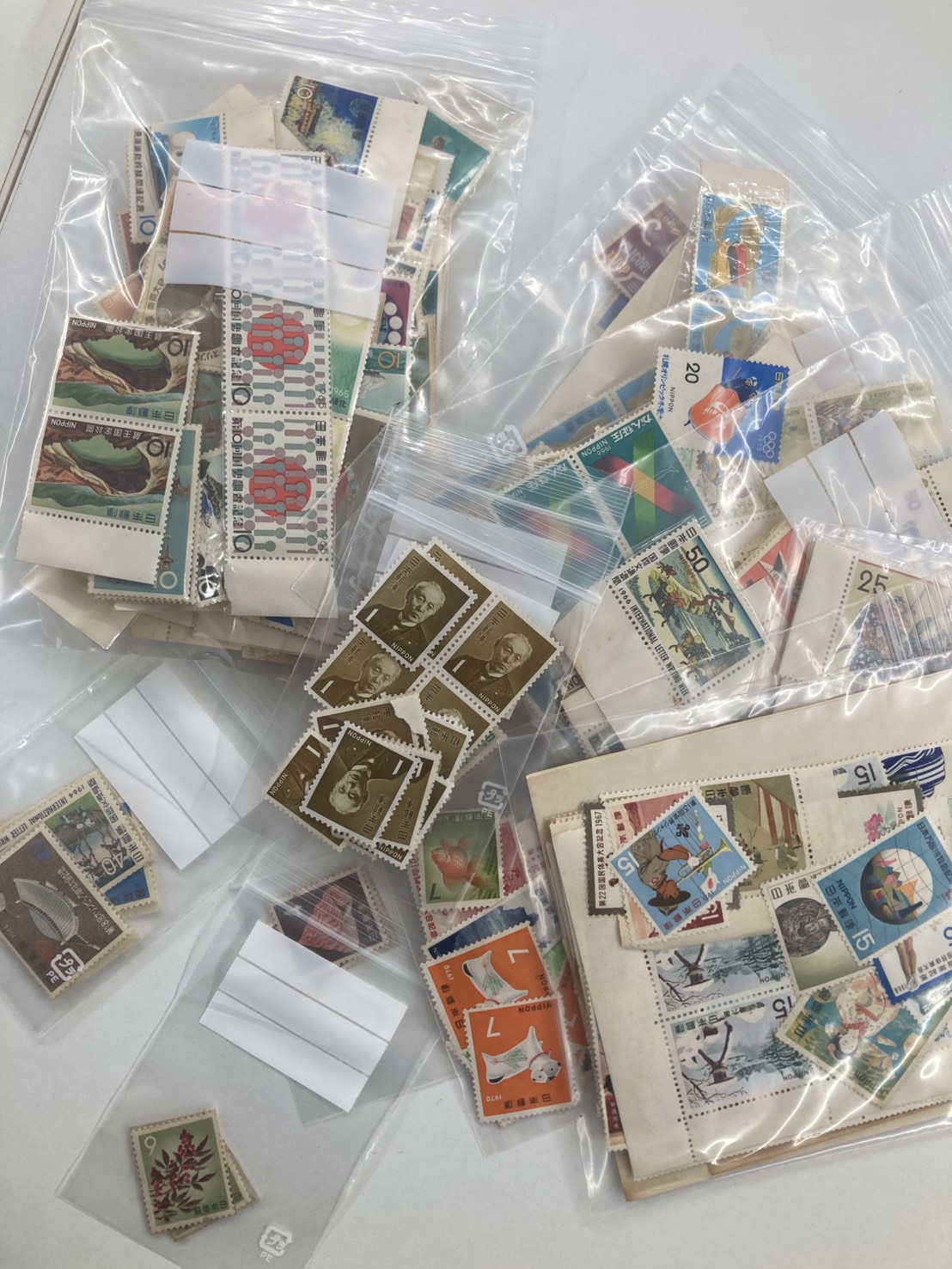 記念切手のシートはもちろん、アルバムに収められたバラ切手や、昔の普通切手など、多種多様な切手をお持ち込みいただきました。