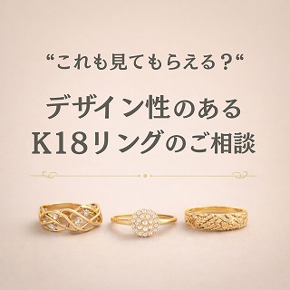 K18リングというと、シンプルなデザインだけが対象だと思われがちですが、実際にはデザイン性のあるお品も、多くご相談をいただいています。