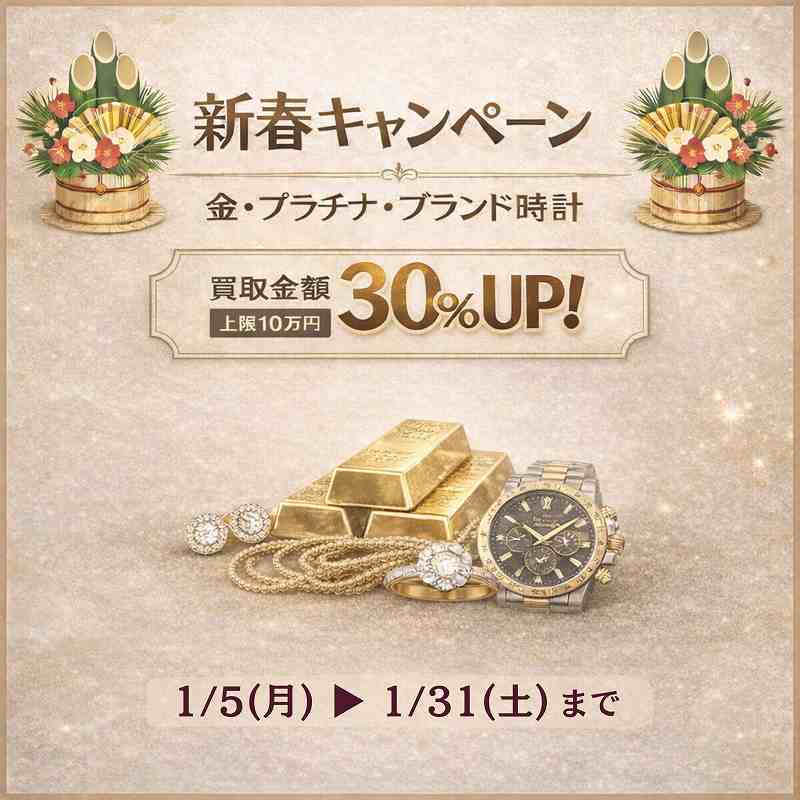 金、プラチナなどの貴金属や、ブランド時計が今だけ買取金額最大30%アップ!